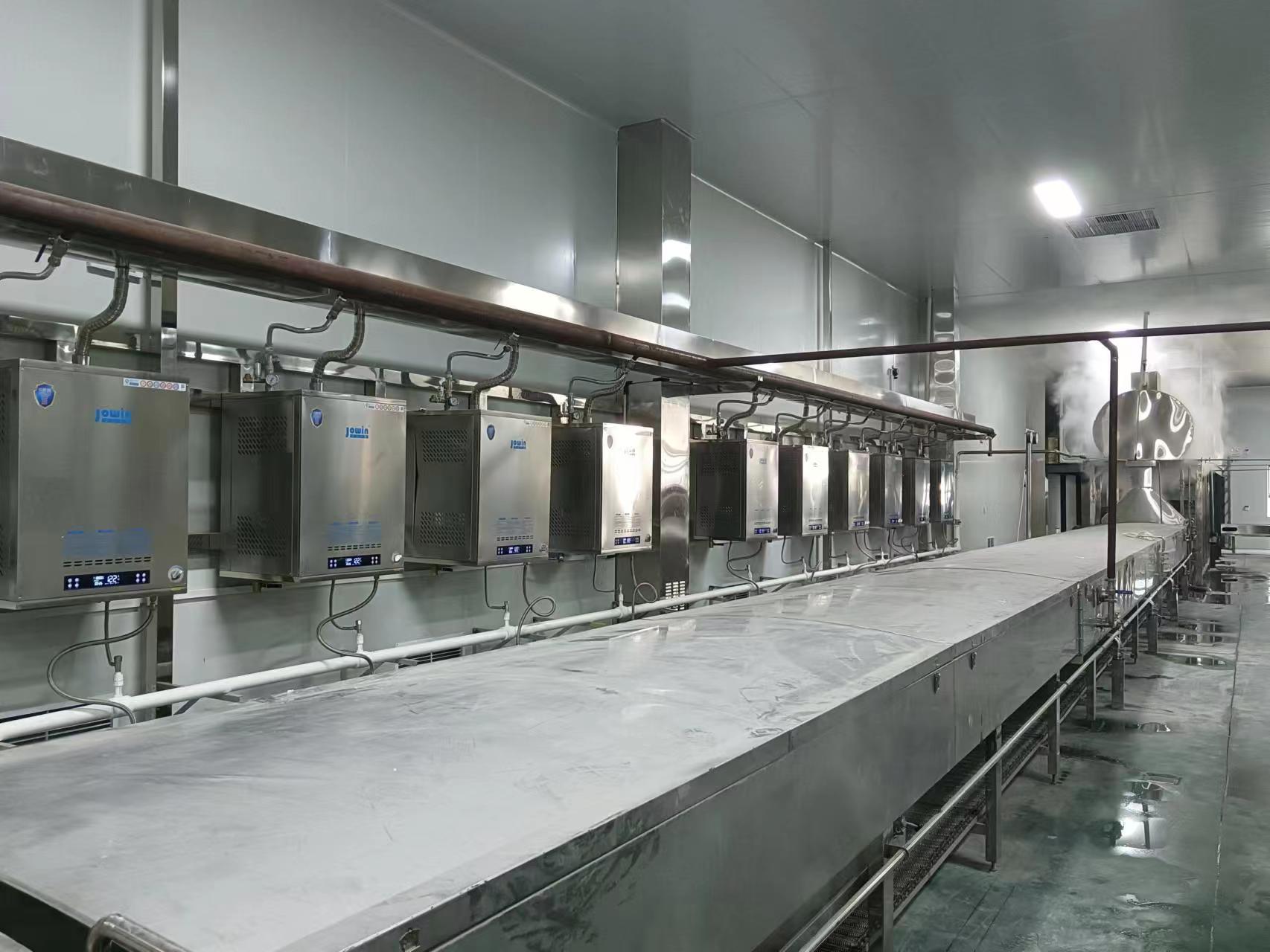 現(xiàn)采用5臺(tái)120G卓益蒸汽發(fā)生器給面條生產(chǎn)線供蒸汽,10臺(tái)120G蒸汽發(fā)生器給涼皮機(jī)供蒸汽,4臺(tái)150G蒸汽發(fā)生器配套蒸箱。