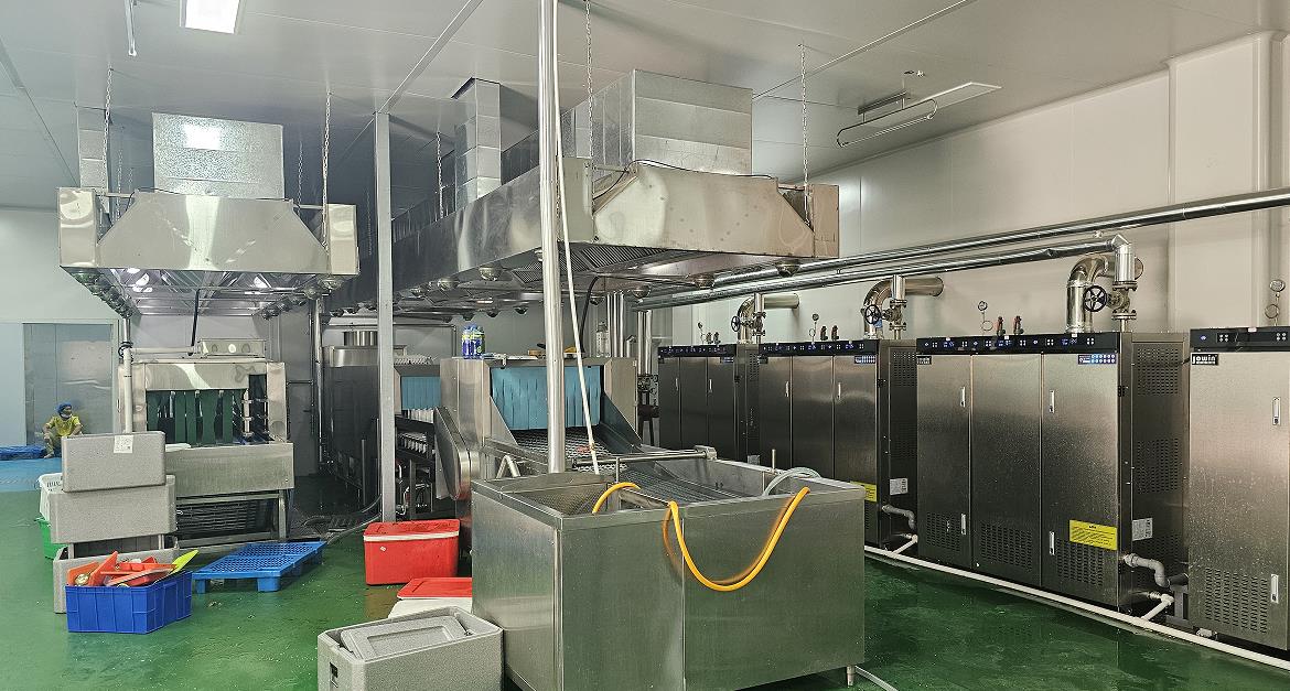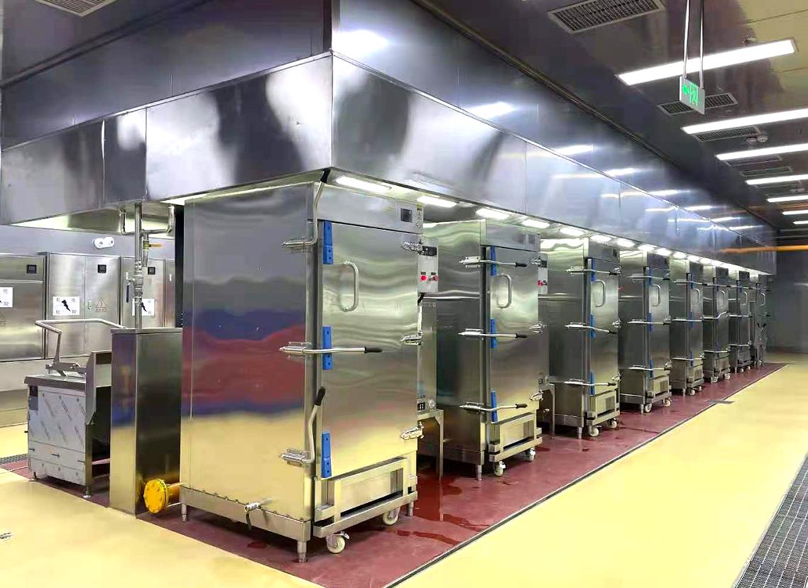 漢中中央廚房項目,配的洗筐機,蒸箱和瓢湯線